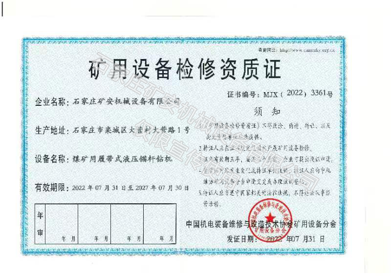 石家莊礦安機械設備有限公司成立于2011年3月,公司位于風景優美、科技發達、交通便利的石家莊市欒城區,是一家專注生產煤礦井下支護機具(錨桿鉆機)和安全鉆機(防突,架柱等)及氣動隔膜泵等礦用機械設備的********,是國內煤礦機械裝備的生產商和服務商,根據用戶需求提供井下適用的鉆機施工解決方案。公司致力于打造研發、制造、銷售、服務為一體的現代化企業,全心全意為煤礦生產保駕護航。 ? 公司建有裝配車間、機加車間和調試車間,擁有嚴格的質量控制體系、先進的產品開發系統、完善的試驗檢測設施、良好的售后服務保障。先后與中煤科工集團沈陽研究院、西安研究院、太原理工大學、燕山大學等知名院校建立了緊密的合作關系。 ? 公司產品主要銷往山西、陜西、山東、內蒙古、黑龍江、云南、貴州等七十多個礦區和地方煤礦,擁有一支成熟的售后技術團隊,并且和中煤集團、華電煤業集團、華潤煤業集團、潞安集團、山西焦煤、淮北礦業等國內知名企業達成長期合作關系。 ? 公司始終秉持“讓煤礦生產更安全”的發展使命,力求誠信與創新,追求卓越與完美,深知“實實在在、心無旁騖做實業”,這才是本分!石家莊礦安機械設備有限公司愿與您攜手共進,共同發展!為客戶創造價值,提供優質的產品和*佳的服務是我們永無止境的理念!